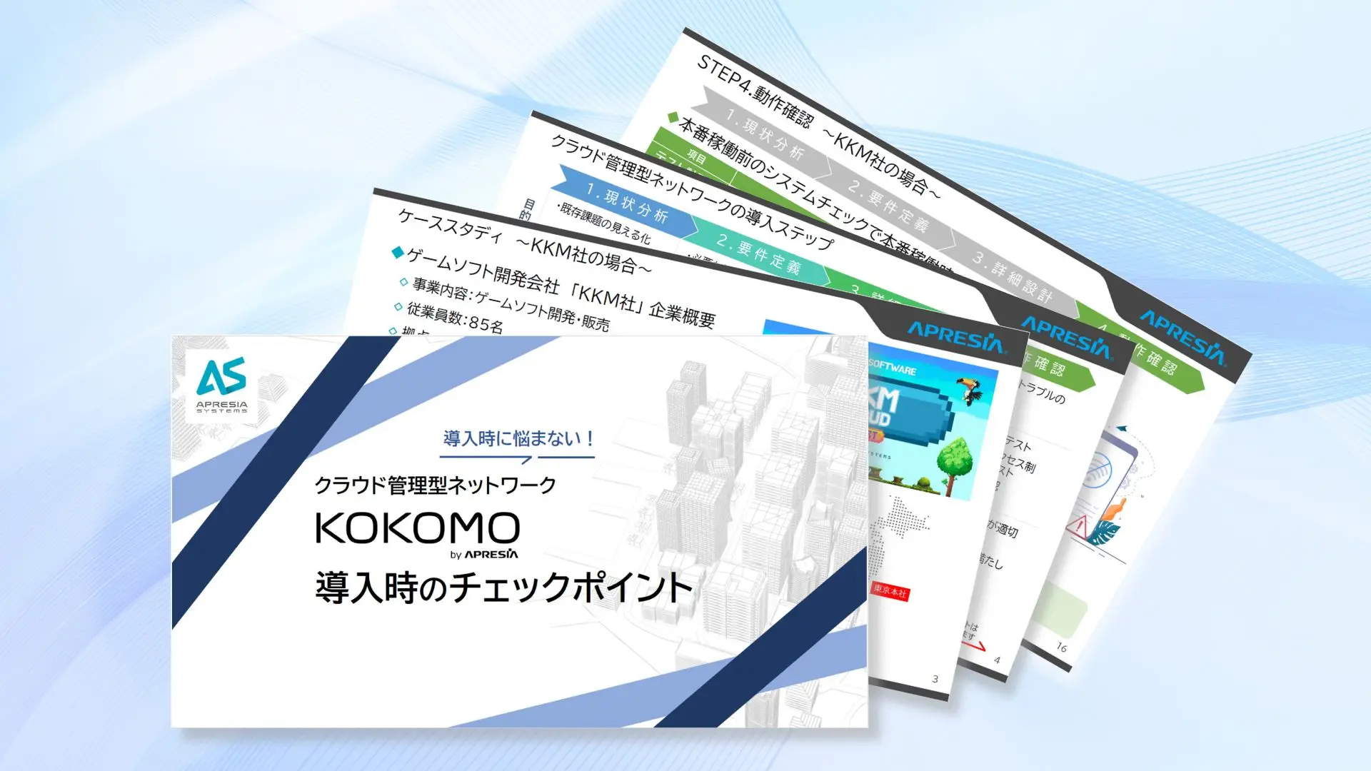 架空のゲーム会社がクラウド管理型ネットワーク製品「KOKOMO」を導入するまでの流れをシミュレーションしています。 クラウド管理型ネットワーク製品の導入時のチェックポイントを把握して、事業規模に適したネットワークを構築していきましょう。
